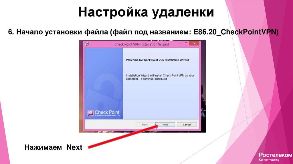 Настройка удаленкиШестой этап установки (файл под названием: CheckPointVPN)
