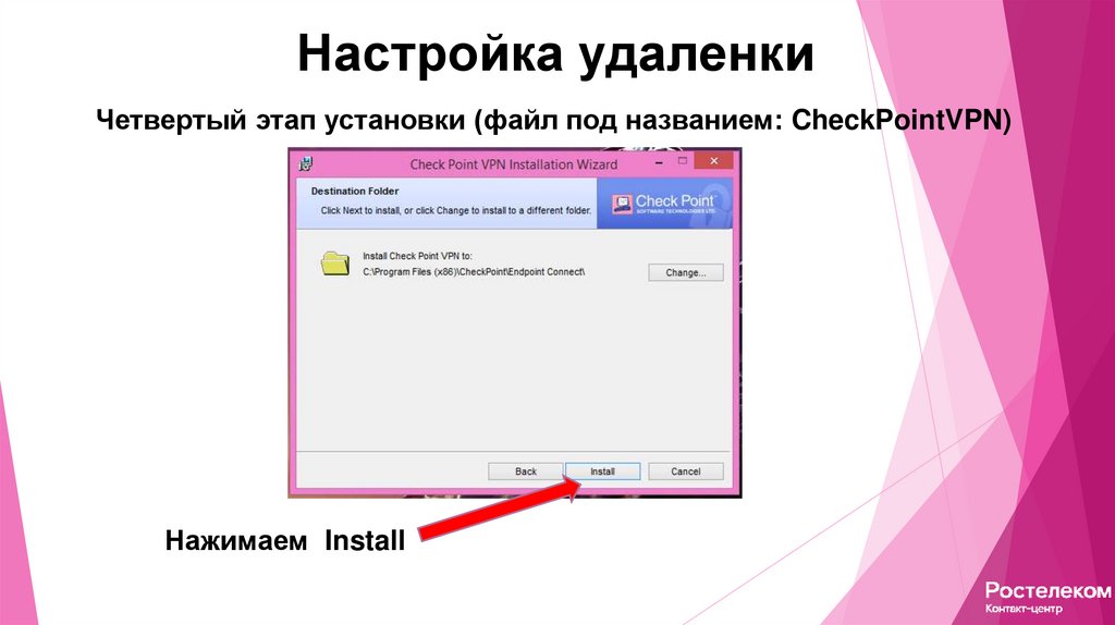 Настройка удаленкиЧетвертый этап установки (файл под названием: CheckPointVPN)