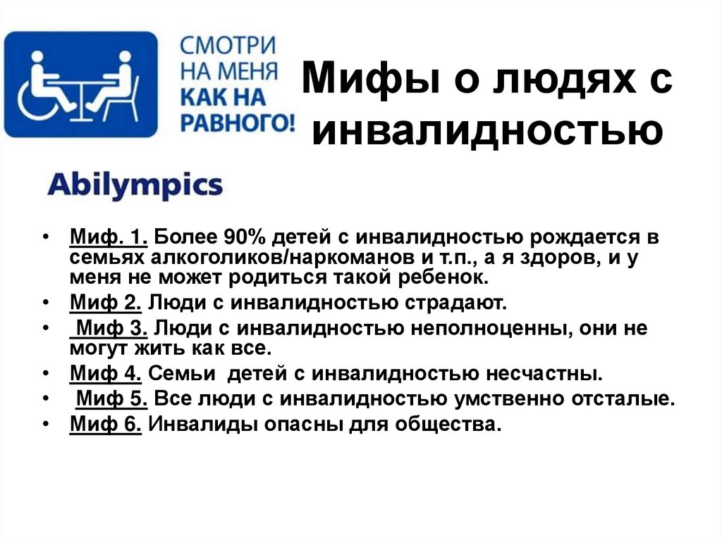 • Миф 3. Люди с инвалидностью неполноценны, они не
