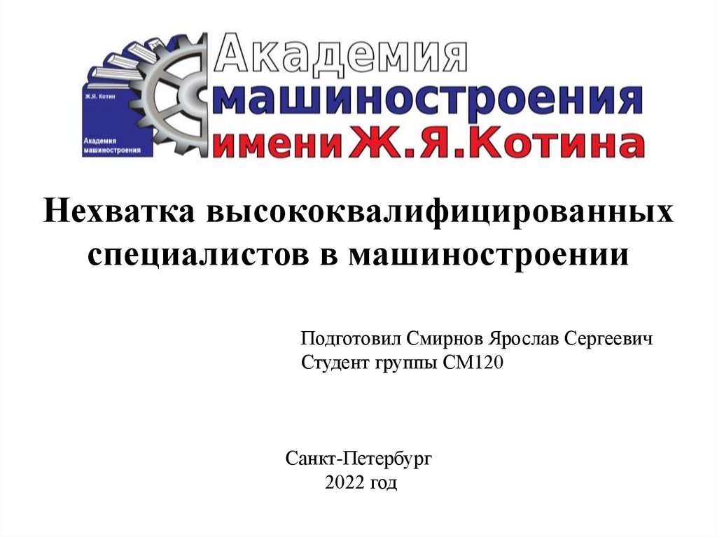 Нехватка высококвалифицированныхспециалистов в машиностроении