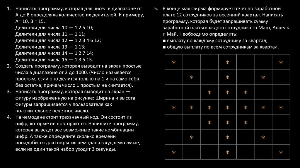 1. Написать программу, которая для чисел в диапазоне отA до B определяла количество их делителей. К примеру,