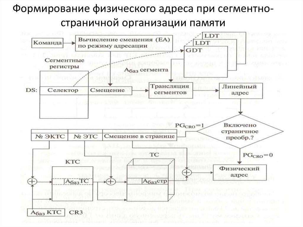 Формирование физического адреса при сегментностраничной организации памяти3.