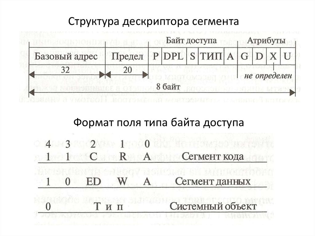 Структура дескриптора сегментаФормат поля типа байта доступа