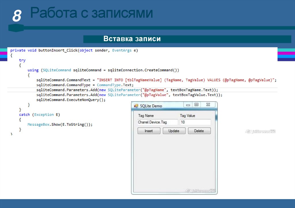 используются вызовы функций (API) библиотеки SQLite. Такой подход уменьшает накладные