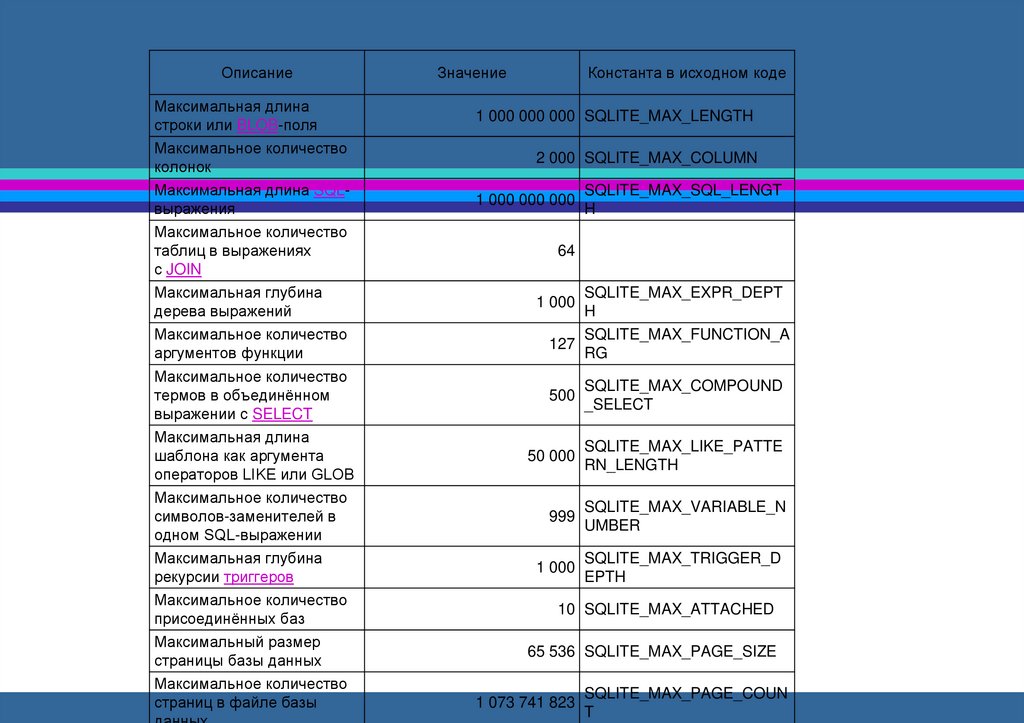 ничем, кроме константы SQLITE_MAX_LENGTH в