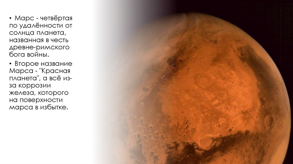 • Марс имеет два спутника: Деймос и Фобос. Переводятся эти дваспутника как "ужас" и "страх" соответственно.