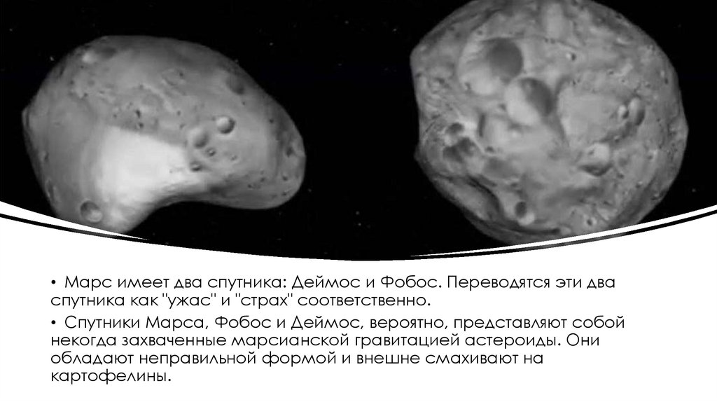 • Спутники Марса, Фобос и Деймос, вероятно, представляют собой
