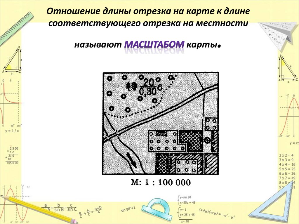 Отношение длины отрезка на карте к длинесоответствующего отрезка на местности