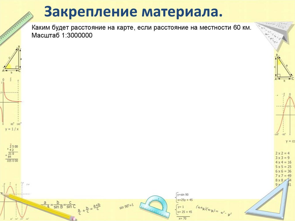 Закрепление материала.Каким будет расстояние на карте, если расстояние на местности 60 км.