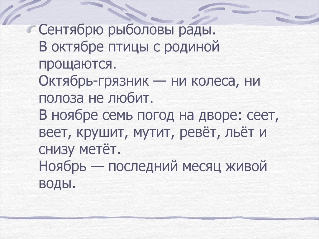 Сентябрю рыболовы рады.В октябре птицы с родиной