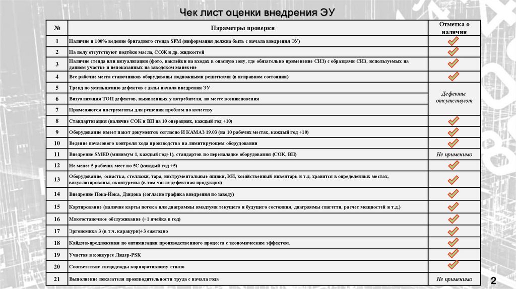 Чек лист оценки внедрения ЭУПараметры проверки