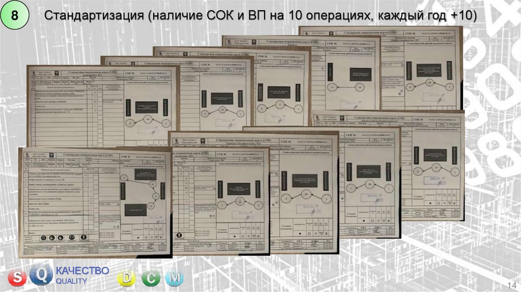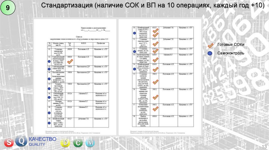 Стандартизация (наличие СОК и ВП на 10 операциях, каждый год +10)