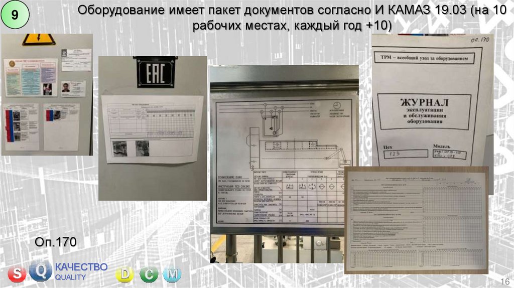 Оборудование имеет пакет документов согласно И КАМАЗ 19.03 (на 10 рабочих местах, каждый год +10)