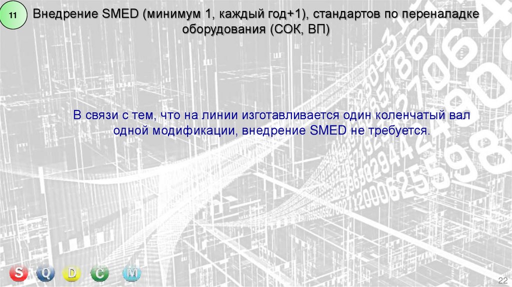 11Внедрение SMED (минимум 1, каждый год+1), стандартов по переналадке
