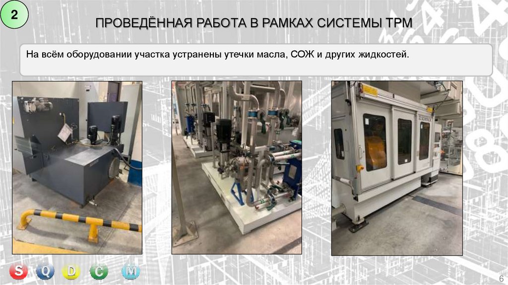 На всём оборудовании участка устранены утечки масла, СОЖ и других жидкостей.