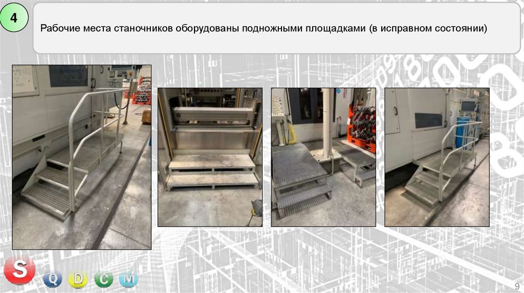 Все рабочие места станочников оборудованы подножными решетками (в исправном состоянии)