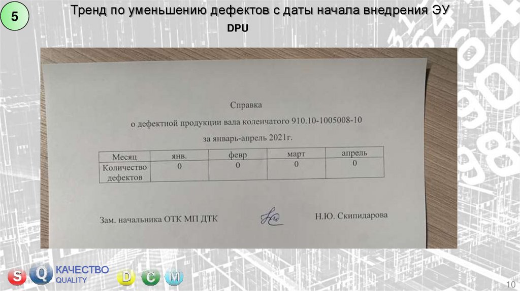 10. Экран качества.