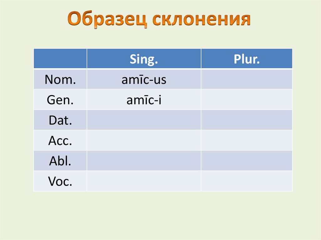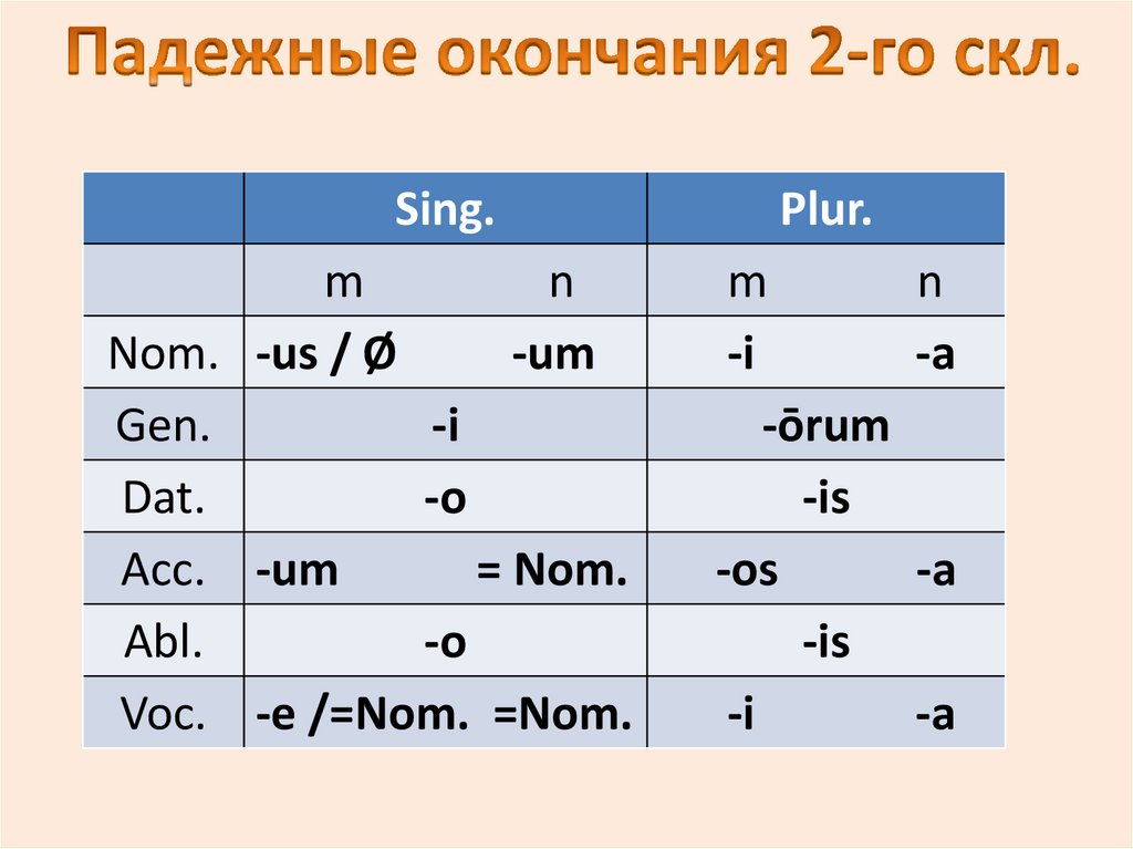 - Nom. и Acc. plur. имеют ок-е -a