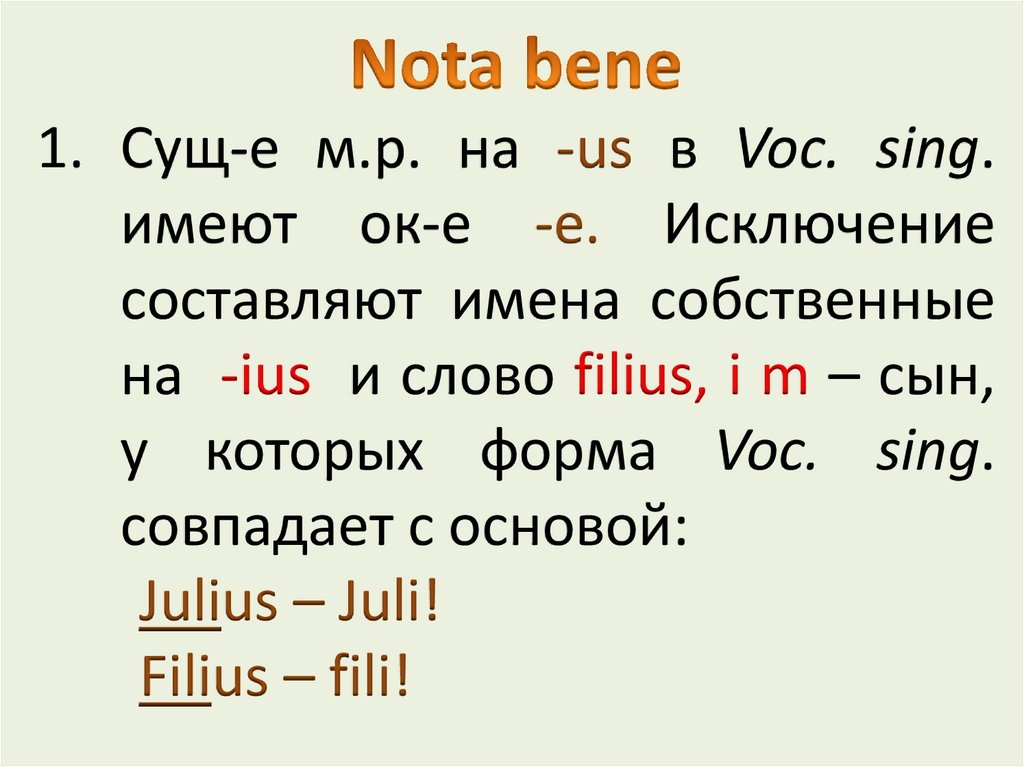 на -ius и слово filius, i m – сын,