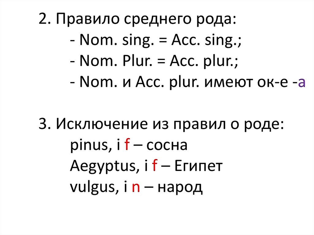 2. Правило среднего рода:- Nom. sing. = Acc. sing.;