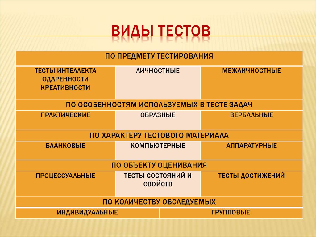 ВИДЫ ТЕСТОВПО ПРЕДМЕТУ ТЕСТИРОВАНИЯ