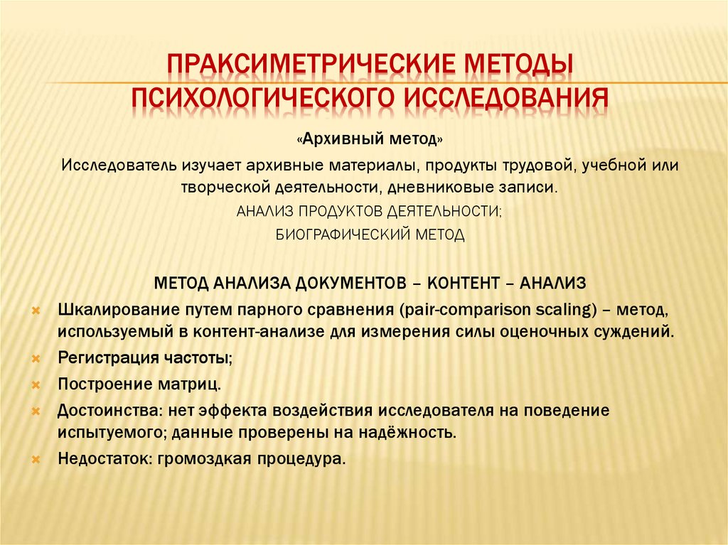 ПРАКСИМЕТРИЧЕСКИЕ МЕТОДЫПСИХОЛОГИЧЕСКОГО ИССЛЕДОВАНИЯ