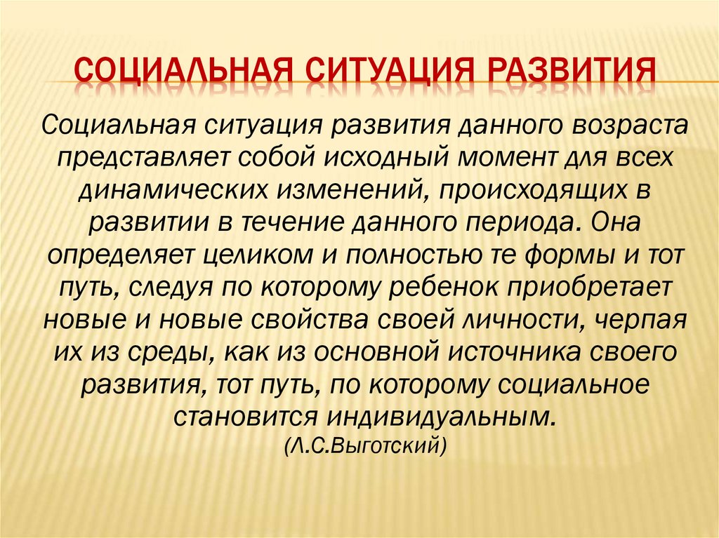 СОЦИАЛЬНАЯ СИТУАЦИЯ РАЗВИТИЯСоциальная ситуация развития данного возраста