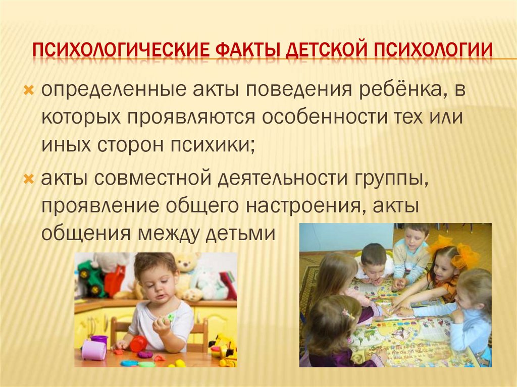ПСИХОЛОГИЧЕСКИЕ ФАКТЫ ДЕТСКОЙ ПСИХОЛОГИИопределенные акты поведения ребёнка, в