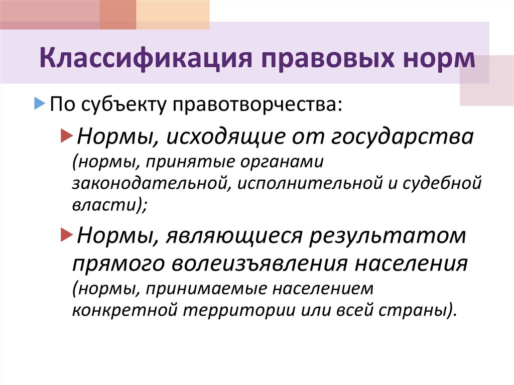 Классификация правовых нормПо субъекту правотворчества: