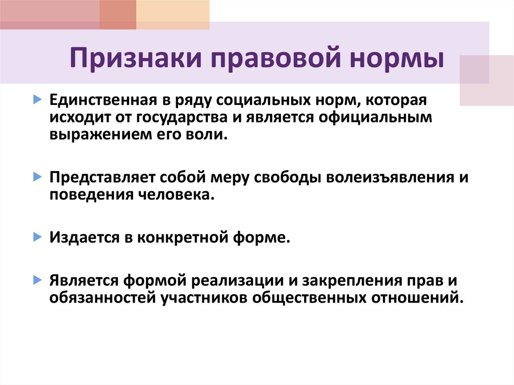 Признаки правовой нормыЕдинственная в ряду социальных норм, которая