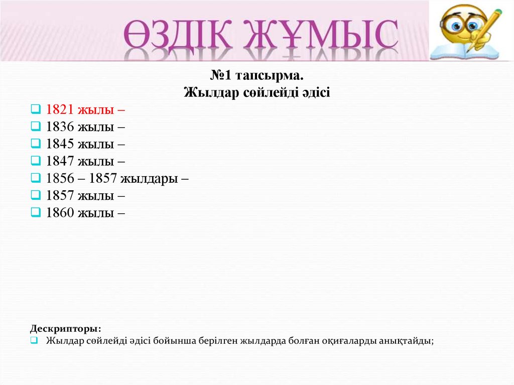 №1 тапсырма.Жылдар сөйлейді әдісі