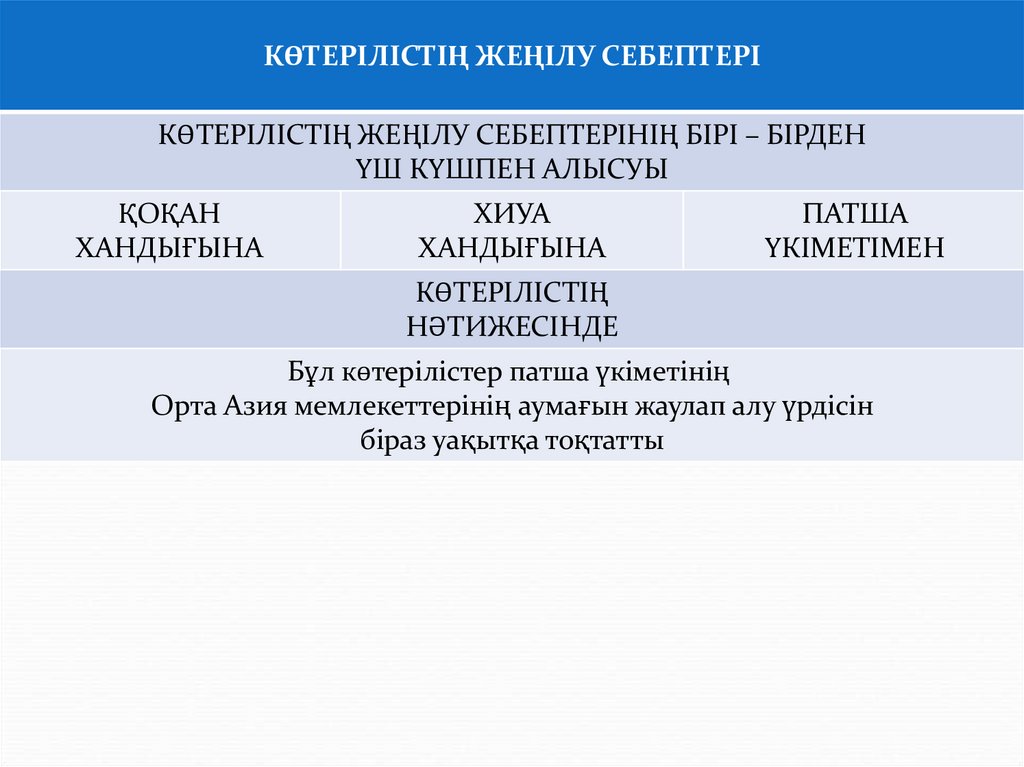 КӨТЕРІЛІСТІҢ ЖЕҢІЛУ СЕБЕПТЕРІКӨТЕРІЛІСТІҢ ЖЕҢІЛУ СЕБЕПТЕРІНІҢ БІРІ – БІРДЕН
