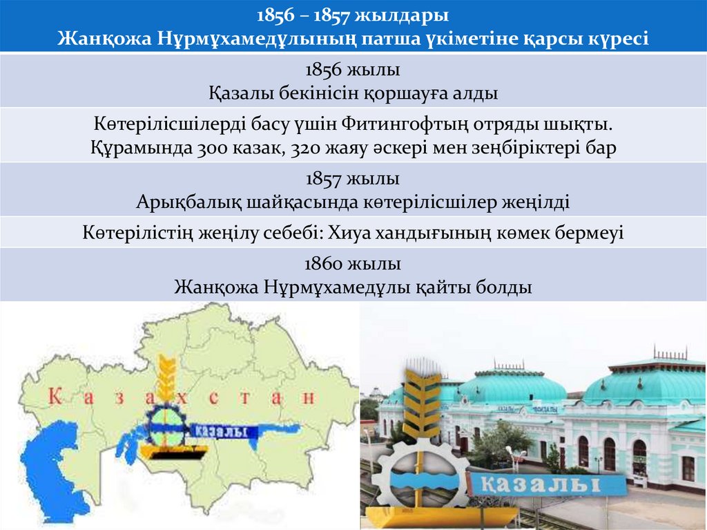 1856 – 1857 жылдарыЖанқожа Нұрмұхамедұлының патша үкіметіне қарсы күресі