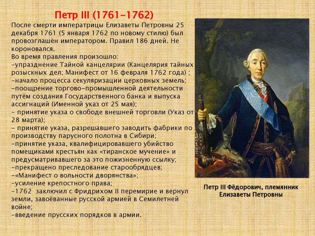 Петр III (1761-1762)После смерти императрицы Елизаветы Петровны 25