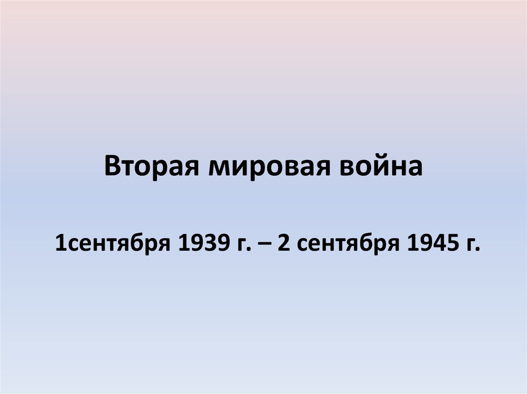 Вторая мировая война1сентября 1939 г. – 2 сентября 1945 г.
