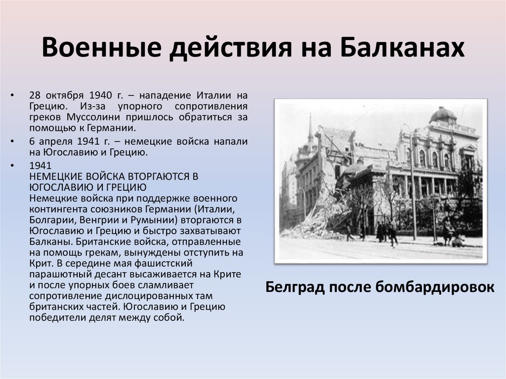 Военные действия на Балканах28 октября 1940 г. – нападение Италии на