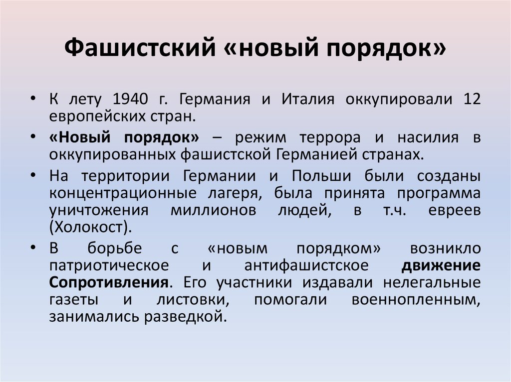 Фашистский «новый порядок»• К лету 1940 г. Германия и Италия оккупировали 12