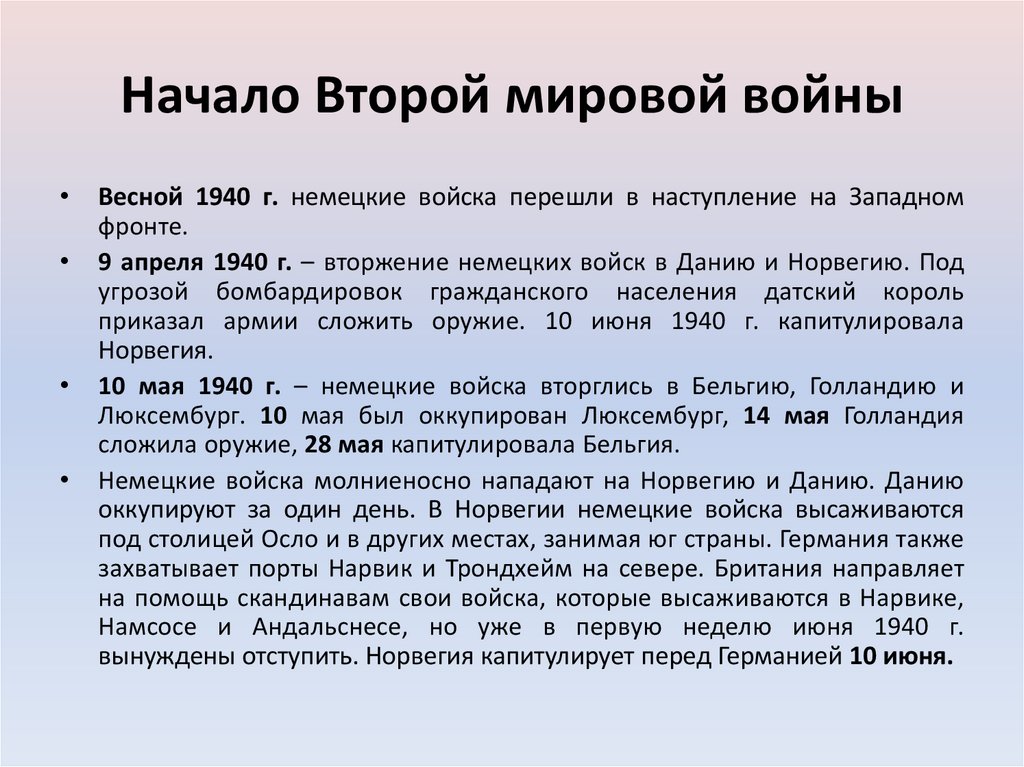 Начало Второй мировой войныВесной 1940 г. немецкие войска перешли в наступление на Западном