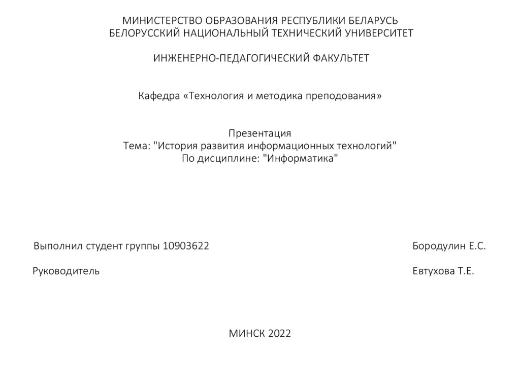 ИСТОРИЯ РАЗВИТИЯИНФОРМАЦИОННЫХ ТЕХНОЛОГИЙ