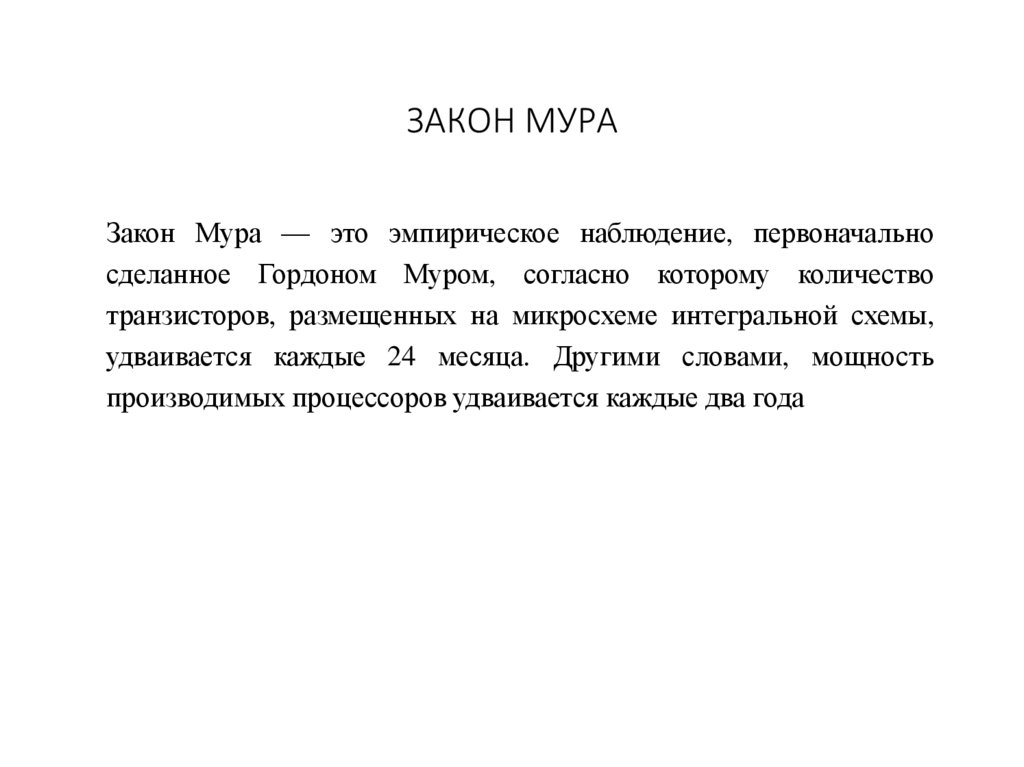 ЗАКОН МУРАЗакон Мура — это эмпирическое наблюдение, первоначально