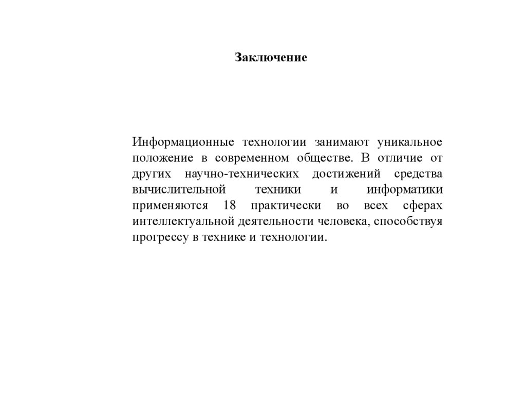 ЗаключениеИнформационные технологии занимают уникальное
