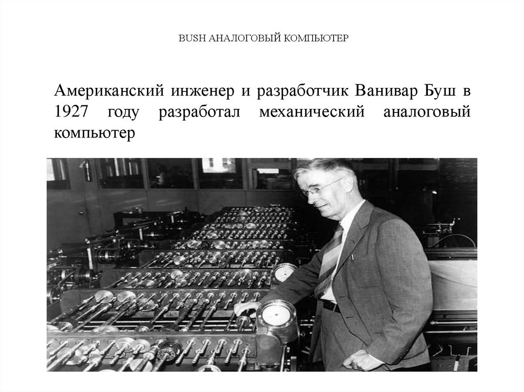 BUSH АНАЛОГОВЫЙ КОМПЬЮТЕРАмериканский инженер и разработчик Ванивар Буш в