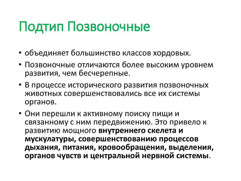 Подтип Позвоночные• объединяет большинство классов хордовых.