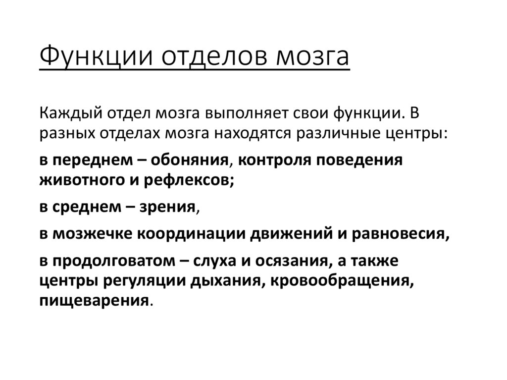 Функции отделов мозгаКаждый отдел мозга выполняет свои функции. В
