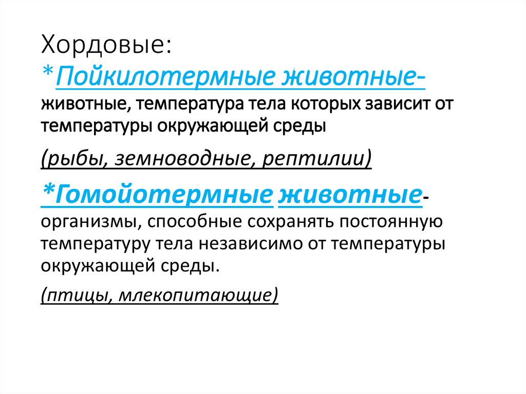 Хордовые:*Пойкилотермные животныеживотные, температура тела которых зависит от