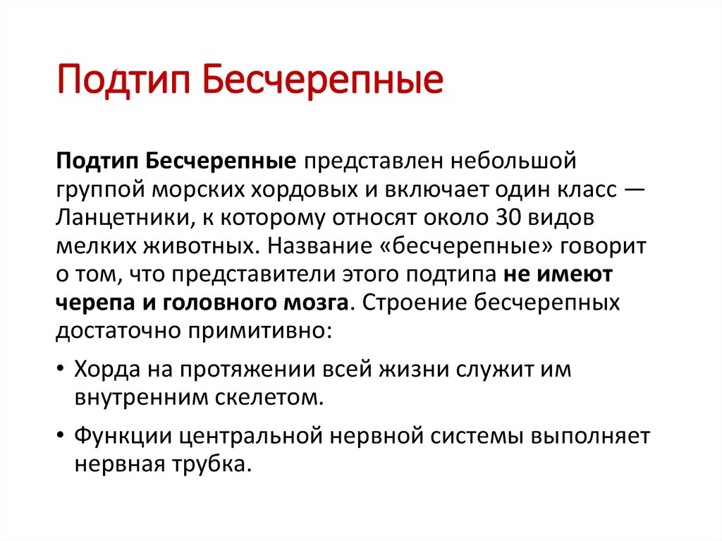 Подтип БесчерепныеПодтип Бесчерепные представлен небольшой