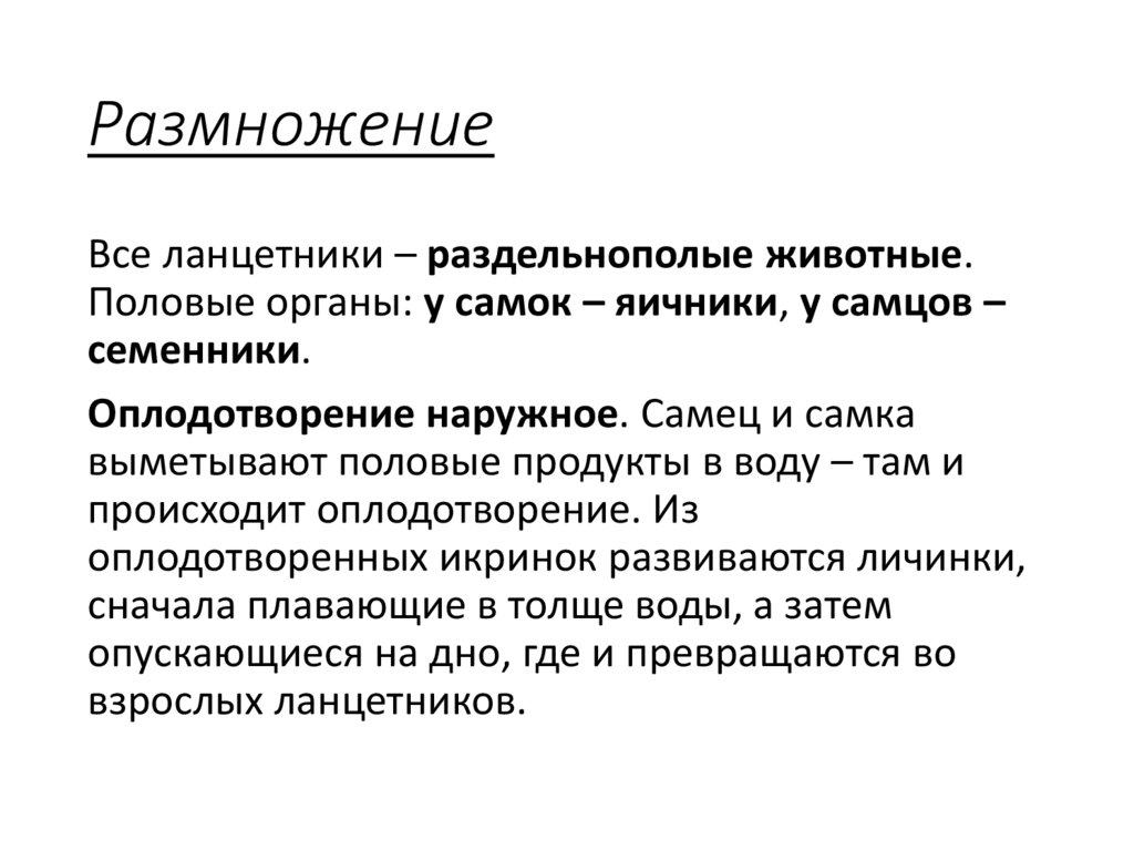 РазмножениеВсе ланцетники – раздельнополые животные.