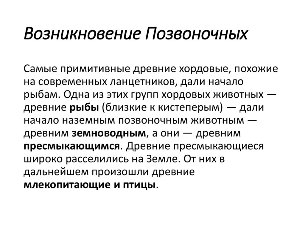Возникновение ПозвоночныхСамые примитивные древние хордовые, похожие