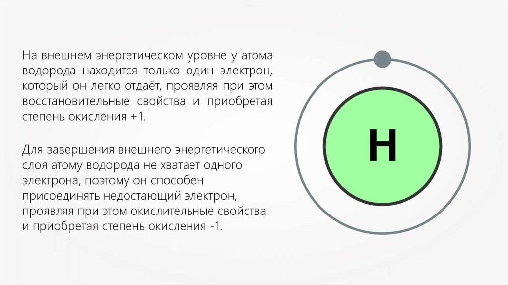 На внешнем энергетическом уровне у атомаводорода находится только один электрон,
