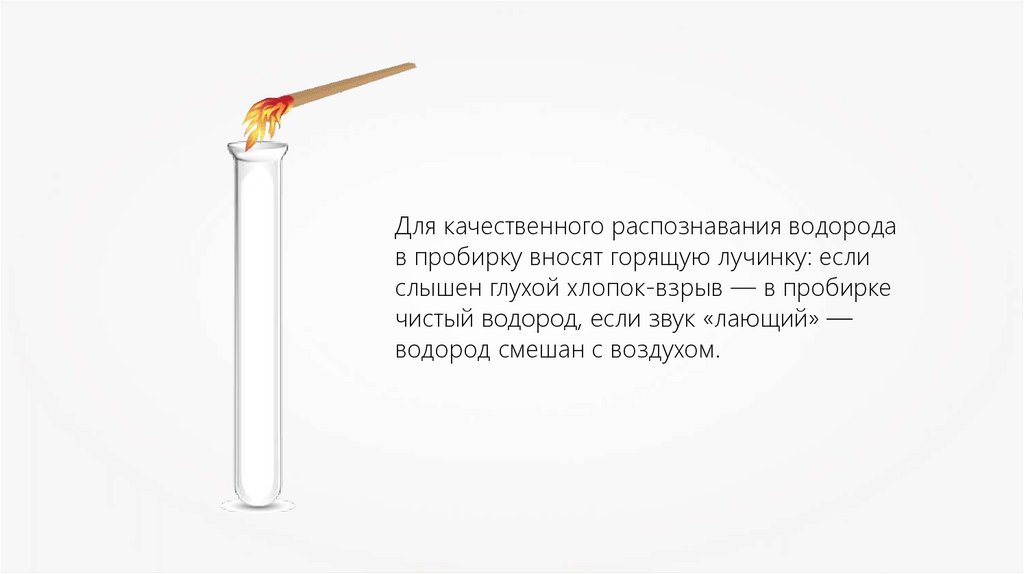 Для качественного распознавания водородав пробирку вносят горящую лучинку: если